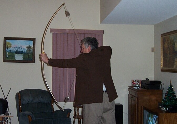Here is a bow, with my favorite handle style, at full draw.