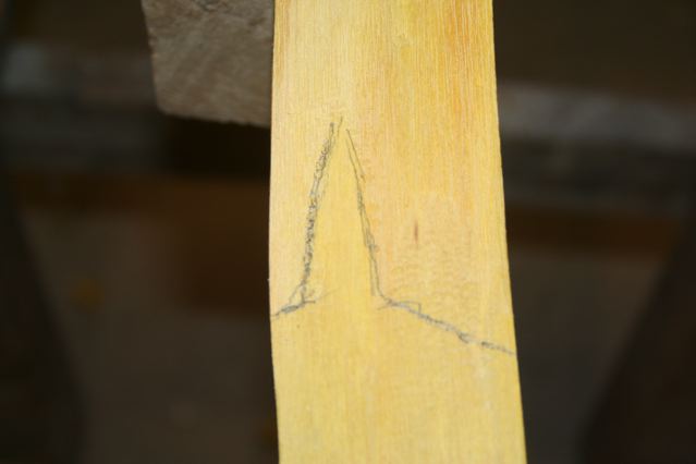 The bending left a bit of a crack in the upper limb on the belly at about mid limb. Most of the crack came out after final tillering but note that that I left the upper limb a bit stiffer in that area.