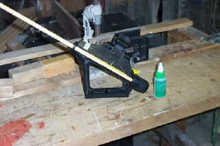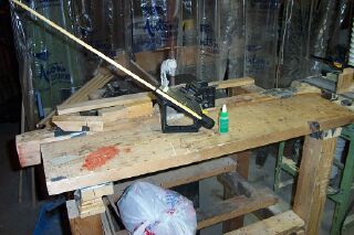 The final step is the insallation off the points. You will want to buy points that match your shaft diameter. Typical diameters are 5/16, 11/32 and 23/64 inches. For target shooting I use field points. You will need to taper the point end of the shaft to a 5 degree taper. You may buy a taper tool from a dealer. I made my own using the fence on my shop beltsander. If you intend to use plastic nocks you will need another jig to cut the 11 degree nock taper. They are easy to make with a bit of ingenuity.