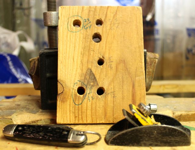 A scrap piece of wood with an 11/32 inch whole drilled into it will aid you in choosing the right shaft.